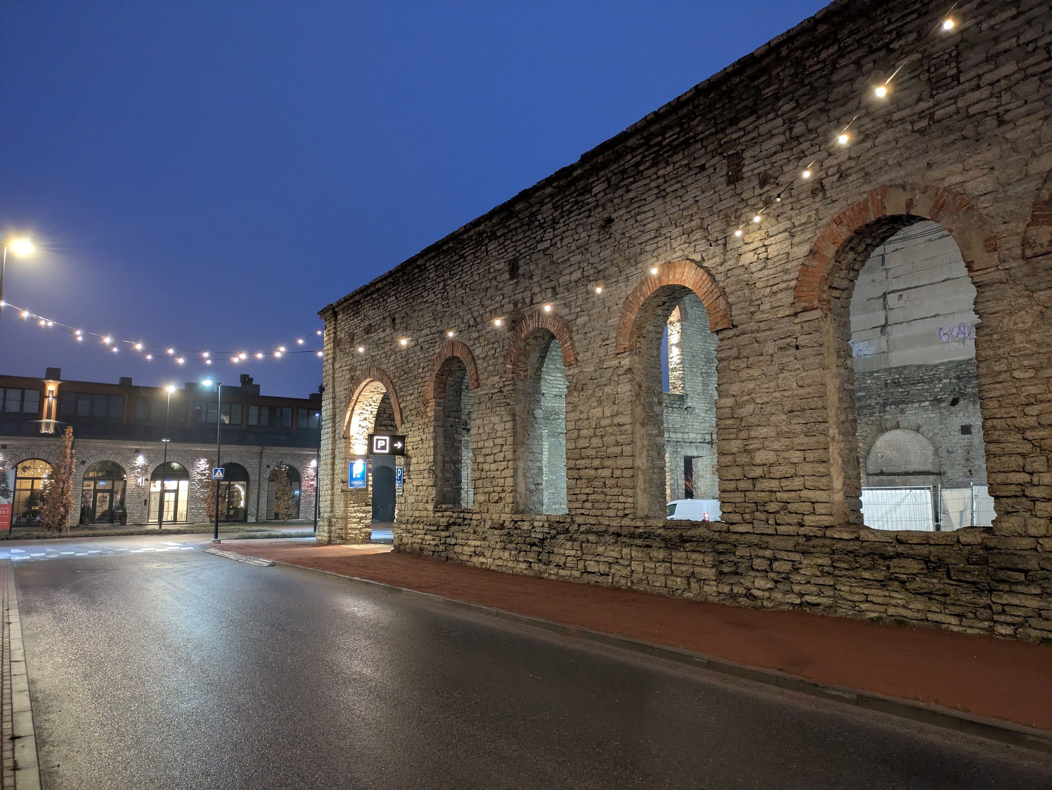 2年ほど前に散歩した時は、荒れ果てた工場跡という感じで、怖くはないものの住むところ、働くところというイメージを持てなかった。しかし、今日の散歩では、これからすごく流行りそうな気配の2区画と感じられた。Voltaの方にはラーメン屋もあった。Krulli側のUus-Volta通り沿いは複数のカフェを含む店舗で女性が好みそうな華やかな感じ。石灰石の壁が元々あったものか、作られたものかはわからないが、街の雰囲気を印象付けている。
