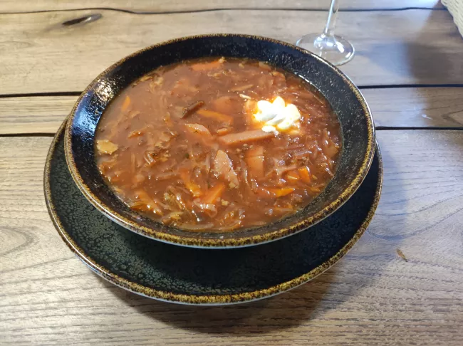 入ってみたロシア料理レストランは安くて美味しかった。タリンで感じるよりはちょっとぶっきらぼうな感じもあったけれど、ボルシチにもペリメニにも満足した。タリンでは、ボルシチはメニューに書かれている店は少ない。ロシア料理屋でも書かれていないことが多いが、ボルシチはありますかと聞くとあると答えが帰ってくる。メジャーな料理ではないのかも知れない。ちなみに、今日の店ではボルシチはもう一つのエストニアの肉スープより1ユーロ安いメニューとして掲載されていた。注文すると今日できるかどうか聞いてくると言われた位だから注文する客は少ないのかも知れない。