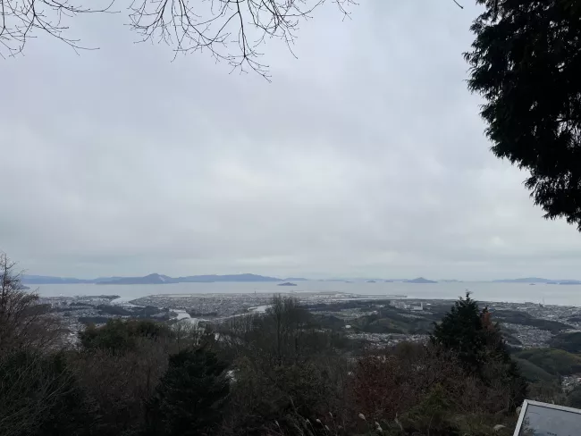 中々美しい。そのまま降りればよかったのだが、ちょっと欲が出て城山展望台まで行くことにした。この判断は今考えると無謀だったが、まあそんなことはよくある。中継地は護館神。岩国城から40分弱。