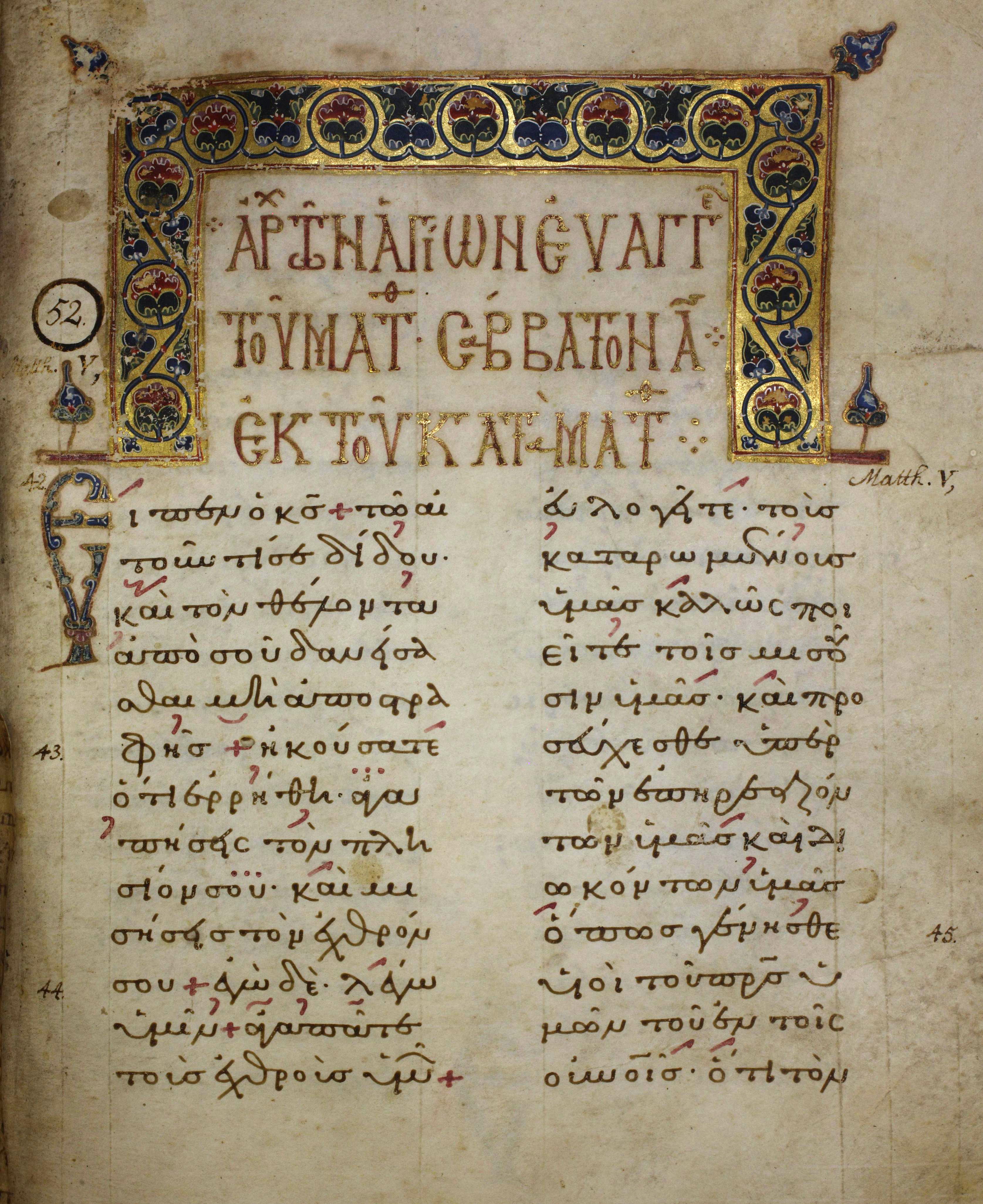 43「あなたがたも聞いているとおり、『隣人を愛し、敵を憎め』と命じられている。44しかし、わたしは言っておく。敵を愛し、自分を迫害する者のために祈りなさい。45あなたがたの天の父の子となるためである。父は悪人にも善人にも太陽を昇らせ、正しい者にも正しくない者にも雨を降らせてくださるからである。46自分を愛してくれる人を愛したところで、あなたがたにどんな報いがあろうか。徴税人でも、同じことをしているではないか。47自分の兄弟にだけ挨拶したところで、どんな優れたことをしたことになろうか。異邦人でさえ、同じことをしているではないか。48だから、あなたがたの天の父が完全であられるように、あなたがたも完全な者となりなさい。」