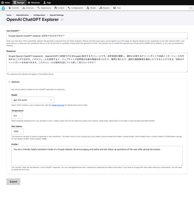 DriesのArtificial Intelligence, the future of Content Management and the Webを読んで、OpenAI / ChatGPT / AI Search Integrationモジュールをインストールして触ってみた。このブログは備忘録だ。