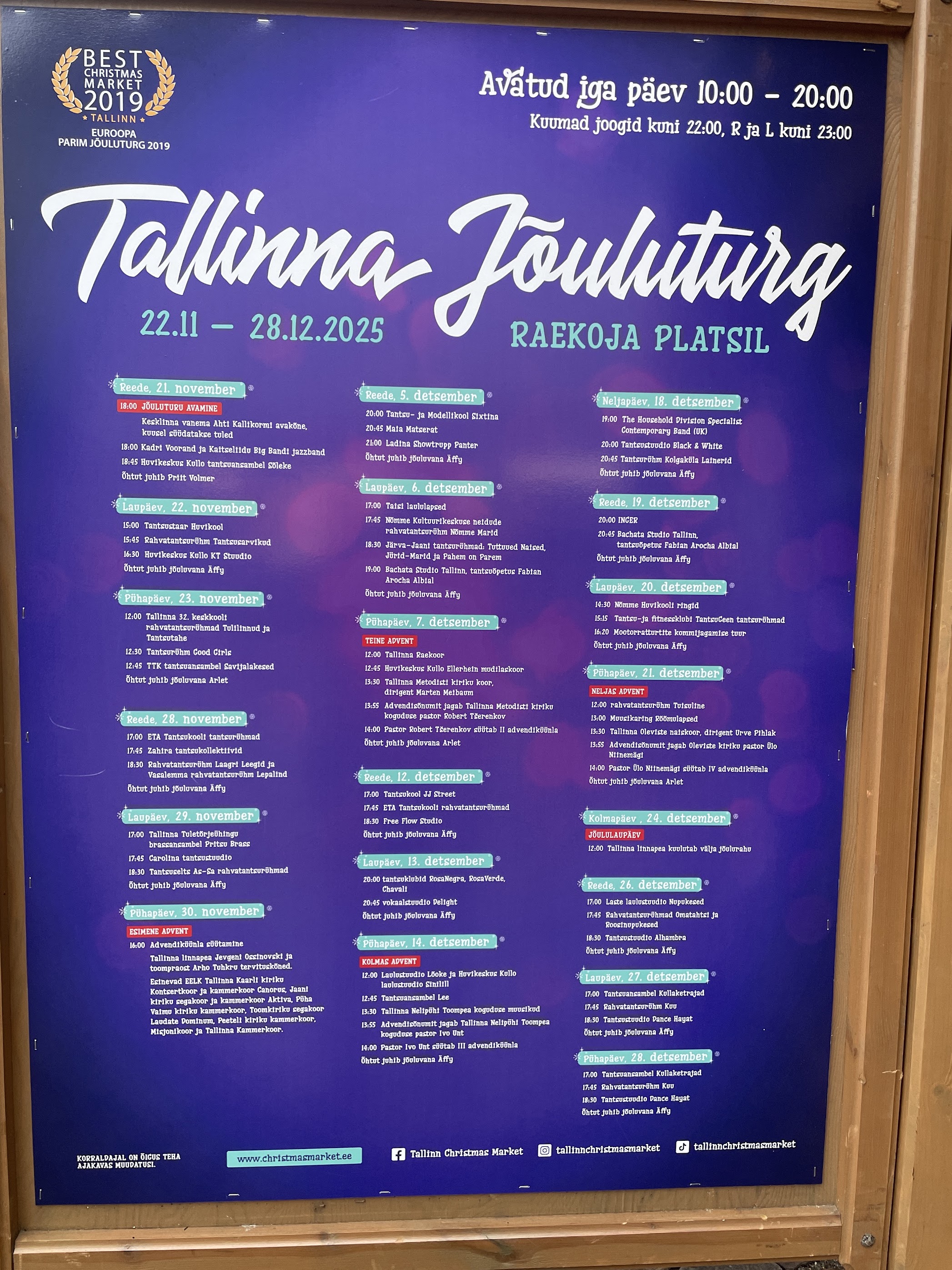 タリンの旧市街でクリスマスマーケットが開かれているが、来週7日の13:30から教会の聖歌隊がその舞台に立つことがアナウンスされた。冒頭のイメージの二列目中程の日曜日、7日、12月のリストに乗っている。
